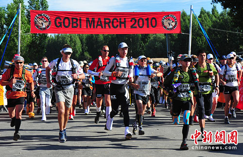 中新網(wǎng)烏魯木齊6月27日電(記者 汪金生)第六屆國際戈壁拉力賽(又名“戈壁長征”Gobi March)27日在新疆吐鄯善地區(qū)境內(nèi)舉辦,來自美國、澳大利亞、法國、新西蘭、中國香港等34個國家和地區(qū)的154名選手、15名志愿者,將利用一周左右的時間,徒步走完280公里的征程。