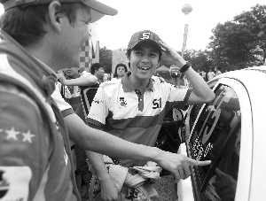 韓寒的支持者顯得更加有組織性,在昨天的發(fā)車現(xiàn)場,記者甚至看到了幾位打著“南京寒迷會”橫幅的帥哥美女,不過韓寒似乎有點(diǎn)不太“合作”,直到發(fā)車儀式即將開始的時(shí)候,才出現(xiàn)在自己的賽車旁,這讓現(xiàn)場的韓迷頗有些失望。
