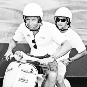 結(jié)束了世錦賽,收獲五金的菲爾普斯在泳池中捍衛(wèi)了自己的榮譽(yù)。逐漸擺脫“大麻門”陰影的他再次成為廣告商眼中的寵兒。而在世錦賽后,他為某著名鐘表品牌拍攝的宣傳廣告也曝光。與菲爾普斯合作的是意大利本土游泳名將羅索里諾。兩人在羅馬世錦賽運(yùn)動員村外騎著摩托,擺出了奧黛麗赫本的電影《羅馬假日》中的經(jīng)典造型:騎著摩托車眺望遠(yuǎn)方。A13b