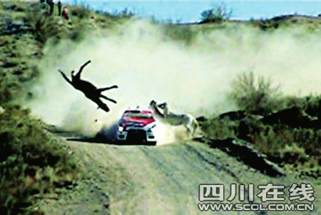 阿根廷賽車手費·比亞格拉正在阿根廷南部參加汽車?yán)。賽車行駛到?nèi)格羅河省的羅卡將軍城附近時,遇到三匹馬正在穿越公路。比亞格拉只看到其中兩匹,等發(fā)現(xiàn)第三匹馬時已經(jīng)來不及躲避了,賽車和馬猛烈相撞后將馬撞得凌空而起。這起事故造成這輛三菱賽車的前半部分損傷不輕,但是比亞格拉僅僅因為事故耽誤了30秒鐘,隨后駕駛著賽車?yán)^續(xù)前進(jìn),并且完成了當(dāng)天的全程比賽。(新華社)