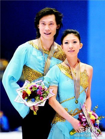 在前天的雙人滑短節(jié)目比賽結(jié)束后,該項目金牌的爭奪便已基本成為我國選手的“內(nèi)戰(zhàn)”。在短節(jié)目比賽中,張丹/張昊得分居榜首,龐清/佟健居次席。排名第3的一對兒美國選手與龐/佟的得分差距很大,基本失去了爭冠資格。昨天的自由滑比賽中,倒數(shù)第2位出場的龐清/佟健以一曲深情的《羅密歐與茱麗葉》征服了評委,得到了119.63分。此前出場的張丹/張昊則在個別動作中出現(xiàn)失誤,只得到111.39分。最終,龐清/佟健以總分187.33分奪冠,繼2002年和2004年后第3次問鼎四大洲錦標賽桂冠,張丹/張昊獲亞軍。