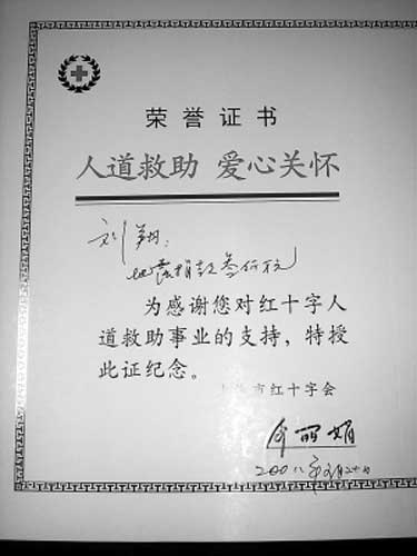 劉學(xué)根說,他晚上還要打電話告訴劉翔,自己在紅十字會被深深感動了!拔覜]想到有那么多人到這里來捐款,全都是默默無聞的,進來捐了錢就走了,他們都很讓人感動!逼鋵,老劉走進紅十字會時,也沒張揚,默默排隊,默默捐款,只是因為捐款數(shù)額比較大,又因為捐款人是“劉翔”,才被人認了出來。“大家都是支援災(zāi)區(qū)的普通人,都是在盡自己一份力量”,老劉說。