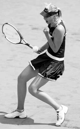 昨天,2008賽季法國網(wǎng)球公開賽繼續(xù)第四個(gè)比賽日的爭奪。因?yàn)榇笥辏^號種子莎拉波娃的首輪比賽被推遲到了第四天方才登場,結(jié)果身著最新靚麗戰(zhàn)袍,戴著18K金耳環(huán)閃亮首秀的俄羅斯美少女意外陷入苦戰(zhàn),最終憑借長盤決勝,才以總比分6∶1/3∶6/8∶6艱難擊敗世界排名從沒有進(jìn)過前100位的同胞羅迪娜,晉級第二輪。