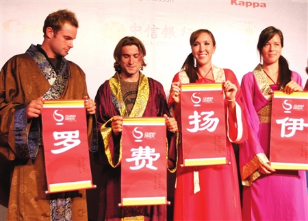 網(wǎng)壇的俊男靚女,搖身一變成了漢朝的公子哥、大小姐。昨晚,揚(yáng)科維奇、伊萬諾維奇、羅迪克等眾多大腕參加中網(wǎng)的歡迎宴會。組委會大打中國牌,所有明星全部換上漢服,一進(jìn)宴會廳,就招來了眾多“粉絲”的追捧。
