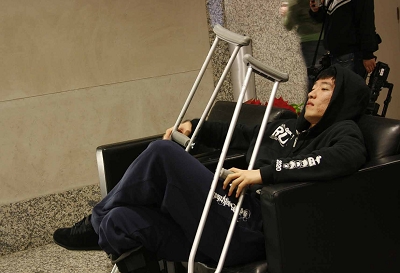 一襲黑衣,穿著鐵鞋,拄著鐵拐,劉翔在美國(guó)時(shí)間10日中午來(lái)到赫曼紀(jì)念醫(yī)院進(jìn)行首次復(fù)診。近一個(gè)小時(shí)的X光檢測(cè)和觀察,劉翔術(shù)后的情況也很直觀地反映了出來(lái)!盎謴(fù)非常理想,手術(shù)非常成功!边B續(xù)兩個(gè)“非!敝,師傅孫海平顯得相當(dāng)激動(dòng)。根據(jù)X光片顯示,劉翔跟腱部位與手術(shù)前相比非常光滑。此外劉翔開(kāi)刀的2.5厘米創(chuàng)口也愈合得很好。克萊頓醫(yī)生對(duì)此也很滿(mǎn)意。