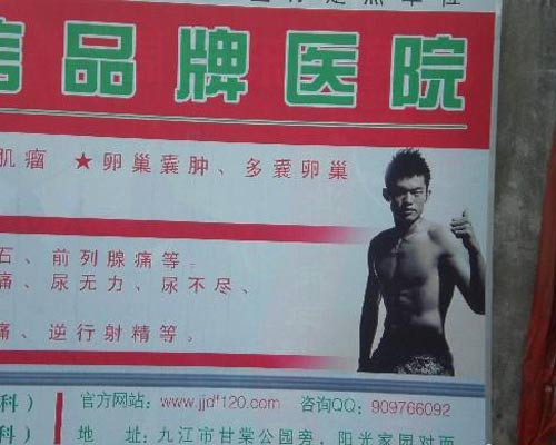 在某醫(yī)院的宣傳巨型海報(bào)中,一身健碩肌肉的林丹和一位不知名的女子分列兩邊,林丹的肖像旁全是宣傳男科疾病和性病治療的。林丹的熱心球迷表示,林丹的這張性感照片是早前為《時(shí)尚健康》雜志拍攝的封面寫(xiě)真,并非為該醫(yī)院專門(mén)拍攝的,所以這極有可能又是一則盜用林丹肖像的“山寨廣告”。