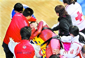 綜合《京華時(shí)報(bào)》、《今日早報(bào)》等報(bào)道,4日的全運(yùn)會短道速滑賽場上出現(xiàn)了驚險(xiǎn)一幕;在女子500米預(yù)賽中,新疆小將孔雪的脖子被冰刀劃傷,出現(xiàn)了一道6厘米長的傷口,一時(shí)血如泉涌?籽╇S后被送往醫(yī)院縫合了14針。昨日,孔雪帶傷上陣,現(xiàn)場掌聲、加油聲此起彼伏。