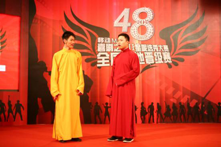 而記者在8月8日舉辦的移動(dòng)MM之《喜劇之王2》星呢選秀大賽48強(qiáng)晉級(jí)賽華北站的比賽現(xiàn)場(chǎng),意外的發(fā)現(xiàn)參賽的17位選手中17號(hào)的黃鶴飛竟然也是來自德云社的弟子。比賽中黃鶴飛的表演基本上都以相聲為主,只是比賽最后一個(gè)環(huán)節(jié)黃鶴飛以醒目的紅褲衩外穿的超人造型相聲表演讓評(píng)委很是不解。