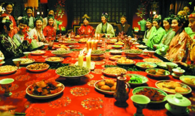 新紅樓大部分場景是在北京懷柔中影基地棚拍的。劇中最奢華的一場戲“元妃省親”,是在5000平米的超大攝影棚內(nèi)搭建的大觀園中拍攝的。怡紅院外景的春夏秋冬與凸碧山莊兩個(gè)大場景的拍攝工作則在3000平米的大棚中完成。新紅樓把取景放在幾組重點(diǎn)建筑上,如怡紅院、瀟湘館、大觀樓、藕香榭、沁芳亭橋、讀西廂處、葬花冢、凹晶溪館、凸碧山莊、櫳翠庵等。其中很多景是用好幾個(gè)地方組合而成,比如林黛玉和史湘云中秋聯(lián)詩的“凹晶溪館”,借助電腦特效采集不同地點(diǎn)的建筑圖像加以組合,構(gòu)建成了“凹”字型的水榭,呈現(xiàn)出“寒塘渡鶴影,冷月葬花魂”的凄美情境和韻味。又因?yàn)閳鼍暗奶匦?biāo)準(zhǔn),追求逼真之外還必須追求美術(shù)感,所以一棵背景上松樹的形狀,也是被修改過七八次。此外,新紅樓把烏鎮(zhèn)、蘇州、揚(yáng)州等真實(shí)采拍的外景地穿插進(jìn)去作為銜接,虛實(shí)結(jié)合亦真亦幻。