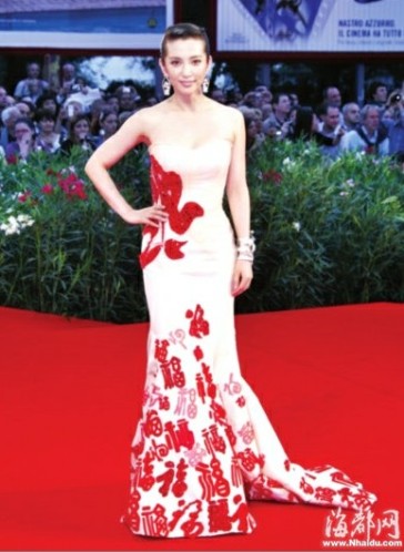 清冷了多日的威尼斯紅毯秀終于因?yàn)椤兜胰式苤ㄌ斓蹏?guó)》而迅速升溫,影片的主創(chuàng)也令華語(yǔ)電影人氣勢(shì)十足。此前,李冰冰要在威尼斯紅毯上穿“青花瓷”禮服的消息被傳得沸沸揚(yáng)揚(yáng),她和范冰冰的“碰瓷”還一度成為熱炒話題。但在昨天的紅地毯上,李冰冰并沒(méi)有選擇提前曝光的“青花瓷”,而是選了另一套“百福圖”的戰(zhàn)袍。