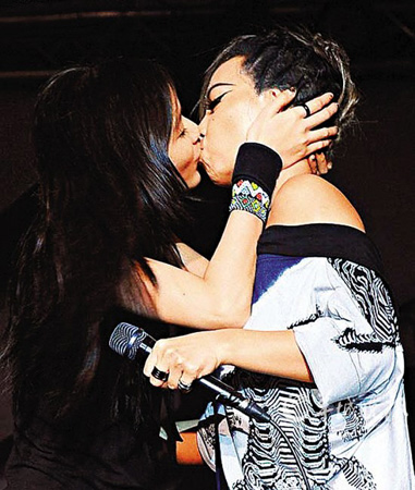 臺(tái)灣天后張惠妹(阿妹)日前于臺(tái)北舉行音樂(lè)會(huì),跟千名歌迷作近距離接觸,她笑言:“很久沒(méi)有唱過(guò)這么近的距離,讓我有點(diǎn)害怕,我連你們的呼吸聲都聽(tīng)得很清楚!”阿妹還邀請(qǐng)歌手張懸、A-Lin等上臺(tái)合唱,又即興拉蘇打綠主音吳青峰上臺(tái)手拖手合唱。唱到高潮時(shí),張惠妹還與張懸獻(xiàn)上“同性之吻”,惹得歌迷尖叫不停。 (王尚)