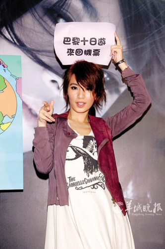 獨(dú)挑大梁唱完3場后,田馥甄高喊:“好爽,最想喝酒!”為了慰勞她,唱片公司讓她抽機(jī)票,結(jié)果她竟抽中當(dāng)中的“最大獎”巴黎商務(wù)艙來回機(jī)票。田馥甄興奮地說自己終于有了運(yùn)氣:“我以前買‘刮刮樂’都沒中過。”被問到會不會想在明年入圍金曲獎最佳國語女歌手獎項(xiàng)時(shí),田馥甄說:“這應(yīng)該不是‘妄想’,我有信心!