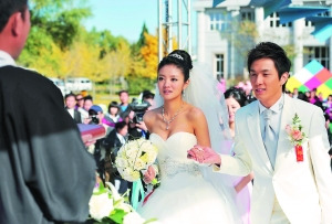 安以軒昨日在微博上說,“今早一醒來就收到神秘人送來的甜蜜巧克力!真是美好的一天~我要結(jié)婚了!”讓人誤以為繼大S之后她也要突然閃婚。其實只不過是她和韓星李承鉉在北京趕拍電影《結(jié)婚狂想曲》而已。該片講述了一對戀愛7年的年輕戀人,在準(zhǔn)備結(jié)婚的前幾天,因一場無名火燒碎兩人的夢,于是決定以舉辦一場網(wǎng)絡(luò)視頻婚禮直播洞房花燭夜為由頭,吸引各類廠商贊助從而博得貪財岳母的支持,至此,一場啼笑皆非的婚禮轟轟烈烈地展開。昨日記者趕往劇組探班,正好趕上男女主角結(jié)婚的一場大戲,安以軒和李承鉉還在現(xiàn)場大秀吻技,惹得一片驚叫連連。