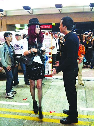 《最強(qiáng)囍事2011》周三晚先是包下港島渣甸山的一家餐廳,拍攝甄子丹與劉嘉玲的重頭感情戲碼,當(dāng)晚,劉嘉玲身穿粉色禮服裙,頗有幾分艷麗。待劇組準(zhǔn)備完畢后,劉嘉玲突然身穿深藍(lán)空姐制服,頭戴貝雷帽,拎著航空箱一臉冷傲走進(jìn)化妝品商場(chǎng),驚艷四座,站在柜臺(tái)里的甄子丹也露出驚喜的表情。