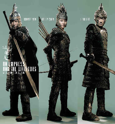 由程小東執(zhí)導,甄子丹、陳慧琳、黎明主演的古裝動作電影《江山美人》暫定明年3月于內地和香港同步公映。今日在美國洛杉磯全球最大的電影交易市場上,監(jiān)制鐘珍及出品方代表于冬將親自揭曉《江山美人》的五款海報?赡苁且驗槠鹩昧恕饵S金甲》的美術指導奚仲文,甄子丹、陳慧琳和黎明的盔甲造型與周杰倫的“杰王子”形象很接近,不同的是,《江山美人》中的人物穿的是“紫金盔甲”。