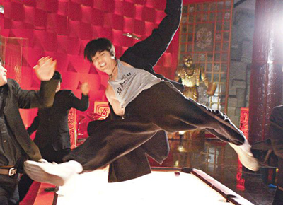中新網(wǎng)1月16日電 周杰倫在新片《大灌籃》中,單獨與80名壯漢惡拚連場,一幕凌空飛腿后落地擺出金雞獨立姿勢的場面,連動作導(dǎo)演程小東也不禁大贊。