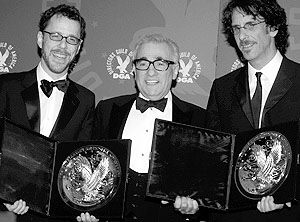 2007年導(dǎo)演工會(huì)獎(jiǎng)上周日揭曉,其中電影部分的“最佳導(dǎo)演”給了《老無(wú)所依》的導(dǎo)演科恩兄弟,去年這個(gè)獎(jiǎng)的最佳導(dǎo)演馬丁.斯科賽斯為他們頒發(fā)了這一獎(jiǎng)項(xiàng)。其他4位獲得提名的導(dǎo)演:分別是《血色黑金》的保羅.托馬斯.安德森、執(zhí)導(dǎo)《英雄不問(wèn)出處》的托尼.吉爾羅伊、執(zhí)導(dǎo)《荒野生存》的肖恩.潘《荒野生存》以及《潛水鐘與蝴蝶》的導(dǎo)演朱利安.施納貝爾。導(dǎo)演工會(huì)獎(jiǎng)由導(dǎo)演工會(huì)的一萬(wàn)多名成員投票評(píng)選,在過(guò)去的59屆中有53次與奧斯卡最佳導(dǎo)演結(jié)果吻合。□聞?dòng)?