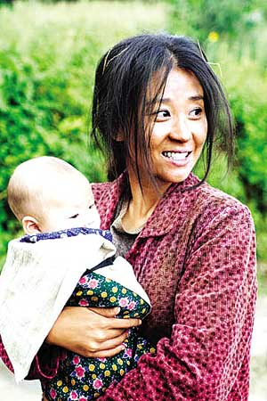 還有櫻桃為紅紅送傘的戲,一路上,無數次跌下梯田的田埂,卻又堅強地爬起來,好不容易到達了學校,站在雨中,那樣純真無邪地笑著看著紅紅,眼中不帶任何雜質。即使沒有語言,僅僅一個微笑,已讓人感動淚流。