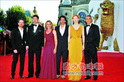 如果說《老無所依》耍酷、玩深度,《閱后即焚》則是科恩兄弟又放松了神經(jīng)回到《老婦謀殺組》式的荒誕。一系列無厘頭的陰謀和誤會組成的連環(huán)扣,過去一直是科恩兄弟的招牌菜,傻氣卻異常執(zhí)著的角色、煞有介事的懸疑還有意想不到的結(jié)局,從《冰風(fēng)暴》、《謀殺綠腳趾》到《老婦謀殺組》反復(fù)出現(xiàn),即使換了布拉德·皮特、喬治·克魯尼等大牌,風(fēng)味還是依舊。因?yàn)檎袛?shù)雷同,甚至在搞笑的方式上變得更淺顯,《閱后即焚》難以被列入科恩兄弟佳作的行列,但憑著把觀眾逗得群起鼓掌的陣勢,它確是威尼斯在開啟這席為時(shí)十天的電影盛宴前奉獻(xiàn)的一道上好開胃菜。