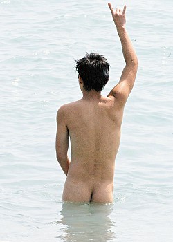 中新網9月19日電 電影《海角七號》臺灣票房大破1億元(新臺幣,下同),范逸臣兌現裸泳承諾,在墾丁全裸入海,更全身涂滿助曬油增加肌膚黑亮質感,泡在海里時還不忘興奮大喊:“我終于用我自己獨特的方式,為《海角七號》的驚人票房慶功啦!”