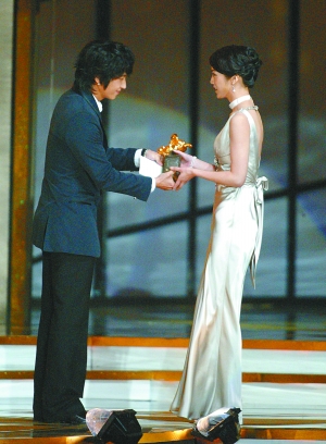 去年金馬獎上,李準(zhǔn)基作為嘉賓為湯唯頒新人獎,這應(yīng)該算是兩人的首次“合作”。圖/CFP