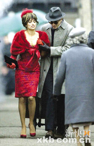 10月27日,佩內(nèi)洛普·克魯茲(Penelope Cruz)一身紅色皮毛艷裝爆乳拍攝新片《9》(Nine)。該片由羅伯·馬歇爾執(zhí)導(dǎo),是一部由同名音樂(lè)劇改編的歌舞片。當(dāng)天在片場(chǎng)出現(xiàn)的還有男主角丹尼爾·戴·劉易斯(Daniel Day Lewis),他和佩內(nèi)洛普·克魯茲上演了親密的擁抱戲。