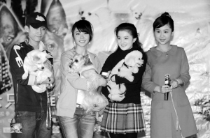 由泰國NGR公司出品的電影《尋找狗托邦》將于本周五起在內地上映,昨日,為片中流浪狗配音的演員楊紫、楊若兮、金銘、張一山、葉靜亮相京城,為影片首映造勢。楊若兮更是牽來自家的雪拉瑞上演“人狗一家親”的好戲。