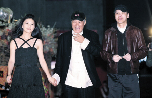 今天正式上映的《東邪西毒終極版》昨晚在西單大悅城首都影院舉行了首映式。除了王家衛(wèi)、梁朝偉、楊采妮等主創(chuàng)外,馮小剛和趙本山等諸多嘉賓也前來捧場。讓人感到意外的是,頭一天還與王家衛(wèi)等人一同跟媒體見面的劉嘉玲昨天并沒有出現(xiàn)在現(xiàn)場。此外,昨晚現(xiàn)場幾乎成了懷念張國榮的專場,眾多“榮迷”聚集在紅地毯兩旁,舉著張國榮的畫像喊著他的名字。幾乎每一位嘉賓都表示,自己此番主要是為了在大銀幕上看張國榮來的。只有馮小剛和趙本山沉默地走完紅地毯,簽名之后匆匆入場,沒有發(fā)表任何看法。記者 楊蓮潔 鄒紅/攝
