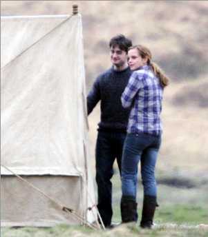 雖然《哈利·波特》第6集今年7月才會(huì)上映,但是結(jié)局篇《哈利·波特7》已經(jīng)開始熱拍。劇組最新拍攝的,是“哈利·波特”丹尼爾與“赫敏”艾瑪在蘇格蘭荒野帳篷外的場(chǎng)景,另一位主角“羅恩”還沒(méi)有出現(xiàn)。從片場(chǎng)照片以及小說(shuō)情節(jié)推斷,丹尼爾與艾瑪拍攝的是他們逃亡在外、風(fēng)餐露宿的場(chǎng)面,“羅恩”魯伯特則因?yàn)槟承┰驎簳r(shí)離開了他們。當(dāng)日的拍攝進(jìn)行得還算順利,想必丹尼爾與艾瑪再次演繹起這兩個(gè)已經(jīng)陪伴了自己近九年的角色,早已駕輕就熟!豆げㄌ7》全名為《哈利·波特與死亡圣器》,這一集電影將一分為二,上部于2010年11月19日上映,下部于2011年7月15日上映。