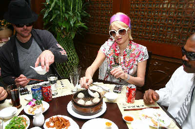 希爾頓一行人在人均消費最低150元的包房里,每人點了180元的套餐享用。用餐期間,希爾頓用筷子不穩(wěn)當(dāng)?shù)貖A起幾只小籠包后,即開始用手抓著吃。隨后顧及形象,她又使用起叉子。飯吃飽后,希爾頓不但放攝影記者進(jìn)包房,讓自己接受一番鎂光燈的掃射,還在該店的大紅本子上留言:“Ilovethisrestaurant!Amazingfood!”(我喜歡這家餐廳!食物很棒!)