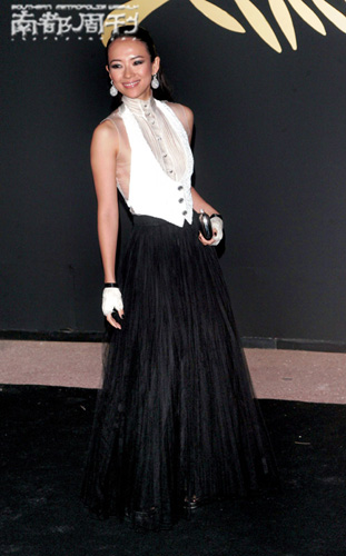 章子怡的知名度和身段,已經(jīng)晉升國際大明星的平臺,但凡出席紅地毯秀,她的表現(xiàn)極少會讓攝影師們失望。紅地毯多年來恪守著一個“不出錯”的大原則,既大方得體又驚艷性感,而2007章子怡在威尼斯的這套著裝則給紅地毯帶來了驚喜,男士雞尾禮服的元素變化,令人想起80年代阿瑪尼的“權(quán)力套裝”(power-suit)與40年代好萊塢黃金時代的大墊肩,黑白色彩簡潔而經(jīng)典,雪紡裙裝令整個硬朗的設(shè)計得到中和,很好地表現(xiàn)了章子怡的野心和她現(xiàn)今在娛樂明星中的地位。