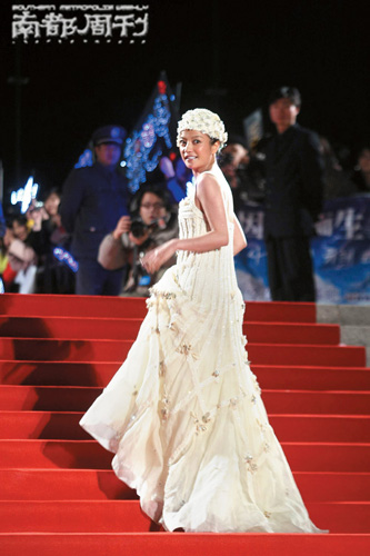 上榜理由:通常情況下,趙薇的穿著表現(xiàn)要比她的星路平常得多,稱她為時裝殺手一點不為過。在這次的風尚典禮上,她表現(xiàn)出了她的時裝判斷力,像低成本制作的電影記錄中的80年代鄉(xiāng)村歌舞團的巨星!先不說曳地長裙對于這個派對是否過于隆重,再說這些裙上的圖案曖昧不清,頭上的帽子仿佛是不負責任的爛電視劇服裝管理給她栽的贓。