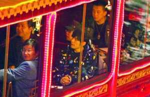 記者想詢問這條船上一個座位多少錢,“聚寶號”導游戴小姐卻告訴記者:“這條船一般不租,只有領導才能坐!碑斠梗@條船上還有秦淮區(qū)政府的幾名領導,但因為杰倫來了,船上一切似乎都是為杰倫所設。原本船內(nèi)的卡拉OK放著古樸的音樂,大家要導游換成了周杰倫的《千里之外》,全都聽得津津有味。