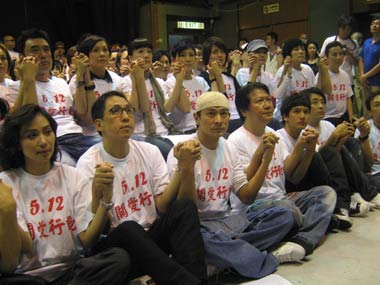 中新網(wǎng)5月16日電 中國四川省汶川縣遭遇特大地震災(zāi)害,震動波及半個亞洲,數(shù)以萬計民眾罹難,災(zāi)情牽動神州大地, 牽動全世界關(guān)注的目光。香港演藝人協(xié)會、香港無線電視、亞洲電視、香港電臺、鳳凰衛(wèi)視、新城電臺六間機(jī)構(gòu)共同組織“一方有難,八方支持”行動,香港媒體及演藝界人士積極響應(yīng),15日深夜,兩百多位歌、影、視藝人及媒體從業(yè)人員齊聚香港電臺,參與大合唱錄音,為四川地震災(zāi)民祈福、加油、打氣。