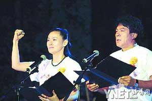 昨晚的演出中,多個(gè)名為“故事講述”的節(jié)目成為主角,它們分別由著名演員或相聲名家演繹。蔣雯麗講述了一個(gè)母親為了保護(hù)自己三四個(gè)月大的孩子,被垮塌的樓房壓死,臨死前還在手機(jī)里寫下短信:“孩子,你要活著,你一定要記住,媽媽愛你”;鞏漢林金珠夫婦則抒發(fā)了對(duì)祖國的深情:“愛心永駐汶川。五月的中國,你讓世界驚嘆”;朱時(shí)茂和王思懿則形成組合,朗誦《流淚后我們選擇堅(jiān)強(qiáng)》。此外,相聲名家姜昆則以《我們選擇堅(jiān)強(qiáng)》為題,高聲說:“中國不哭,我們不哭!站起來,我們?yōu)槟銚纹鹨黄{(lán)天!彼猩婕叭宋锏墓适氯钦嫒苏媸,這些故事讓現(xiàn)場(chǎng)的觀眾非常感動(dòng)。