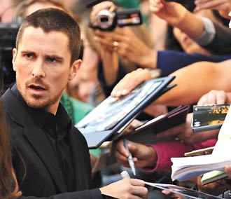 《蝙蝠俠2》倫敦首映,克利斯汀貝爾因媽媽和姐姐指控動(dòng)粗而無笑臉。