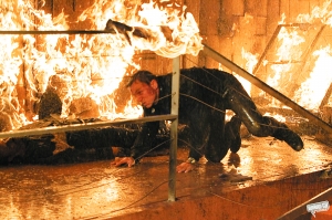 從《皇家賭場》開始,邦德再次回到寫實風(fēng)格,克雷格回憶說《量子危機(jī)》里他跑到疲于奔命。影片的時長是所有邦德片中最短的,但動作戲卻兩倍于《皇家賭場》。四場打斗戲不容錯過,意大利的追逐、奧地利大眼睛劇院的群毆、巴拿馬夜宴的混戰(zhàn)及最后智利沙漠的終極PK。意大利追逐戲是現(xiàn)下非常流行的“跑酷”(Parkour)風(fēng)格,需要克雷格在建筑物間靈敏穿梭,拍攝前兩個月的魔鬼訓(xùn)練讓他身心俱疲。而克雷格覺得最困難的是一場船上打斗戲,因為船身搖晃,令他覺得如同坐過山車,拍得膽戰(zhàn)心驚,那場戲花了兩個星期才拍成。