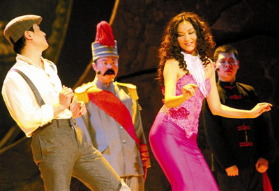 如果說瞿穎幾年前出演賀歲喜劇“韭菜花”中是第一次展現(xiàn)自己的舞臺演技,那么這次在“麻花”中的演出則是時尚與演技兼顧。瞿穎出場時一身著黑色,酷辣卷發(fā)迎風飄舞,全場為之驚艷。結(jié)果,等升降臺全部升起來觀眾才發(fā)現(xiàn),原來是有個滑稽人物趴在瞿穎腳邊拿著大蒲扇使勁兒給她扇風。
