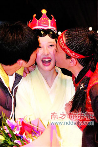 兩位“寶哥哥”同時向“林妹妹”獻吻。