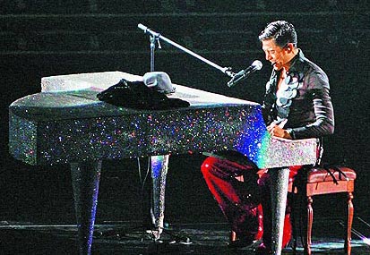 此外,他還苦練2個月鋼琴,展現(xiàn)動靜皆宜的誠意,他說:“我每天半夜洗完澡后練琴,是拚命記下來的!钡巴沓鯊棥度砜凇窌r,因太緊張頻出錯,他說:“后面彈不好,干脆重來好了!睕]想到他重彈了5遍,最后說:“彈鋼琴好難喔!你們以為我是周杰倫啊!”流露可愛一面。但他的國語隨緊張變得更不輪轉(zhuǎn),他苦笑:“我好緊張!國語一直打‘折’!碑(dāng)場被歌迷糾正是打“結(jié)”,他說:“我又回到18年前,我錯了!
