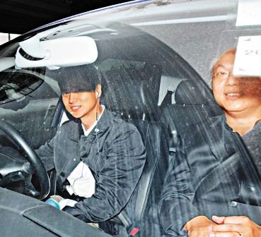 倪震昨午接載林以諾牧師(右)離開。