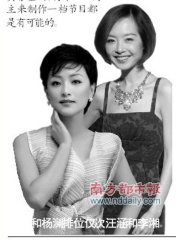 魯豫和楊瀾排位僅次汪涵和李湘。