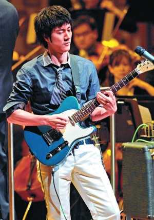 王力宏即場(chǎng)彈吉他演唱。