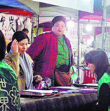此攤一次收費(fèi)220元,用的是易經(jīng)加西方塔羅牌合璧的“先天塔羅”,她望著桌上擺的水晶球“法器”發(fā)楞,卻遲遲不敢把心中所求何事全盤托出,得知要填個(gè)人資料后,她露出驚訝表情,婉拒離去,記者上前詢問(wèn),店家不愿透露,僅低調(diào)說(shuō):“這是人家的私事,我們也不方便說(shuō)!