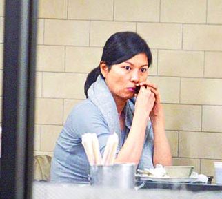 秀秀一人吃飽飽,飯后不忘用牙簽剔牙。