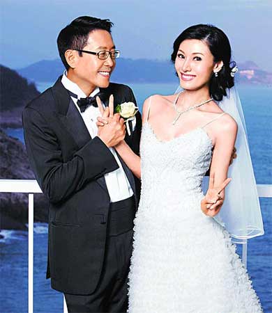 李嘉欣與許晉亨的婚紗照,擺出俏皮姿勢。