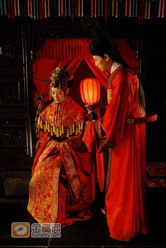 2009年元旦,新版電視劇《紅樓夢》攝制組照常緊鑼密鼓地忙碌著,而這一天拍攝的戲份正是寶玉大婚。在北京廠的攝影棚內(nèi),寶玉房張燈結(jié)彩,一派喜慶氣氛。高懸大紅彩帳的堂前掛著三幅婚聯(lián):“彩筆喜題紅葉句 華堂欣詠采萍章”、“綠窗待月春調(diào)瑟 紅袖添香夜讀書”、“吐鳳雄才成博議 畫眉彩筆點新詩”。而當天的婚俗禮儀據(jù)說也是講究多多。寶玉寶釵拜堂異與旁人的三拜,而是四拜:一拜天地諸神,二拜賈母,三拜賈政王夫人,四為夫妻對拜……當天參演的主要角色有王夫人(歸亞蕾)、薛姨媽(龔麗君)、尤氏(賈妮)、王熙鳳(姚笛)、賈政(許還山)、賈赦(李健)、賈珍(姜彤)、成年寶玉(楊洋)、成年寶釵(白冰)、成年惜春(徐行)、鴛鴦(蔡飛雨)、襲人(李艷)、鶯兒(方安娜)、平兒(程媛媛)、彩云(呂途)、雪雁(宣璐)等近30位演員,個個盛裝華服,喜氣洋洋。戲里戲外的喜慶氣氛聯(lián)成一片。李少紅導演笑稱“這個紅火的場面也算是新版《紅樓夢》跨入09年的一個開門紅吧!
