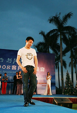 1月16日,網(wǎng)友“天子羽”在博客中曝光了央視主持人在2008客戶答謝晚宴上,做時(shí)裝秀表演的照片。