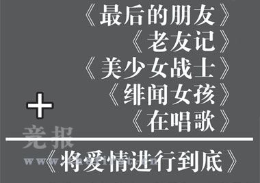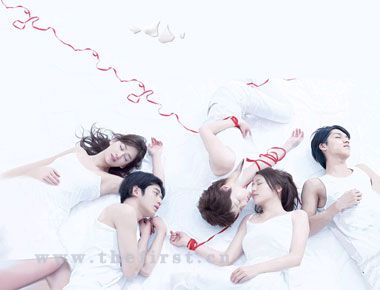 一堆縱橫交錯(cuò)的演員,一段糾纏不清剪不斷理還亂的關(guān)系,全因一條紅絲帶而糾結(jié),話劇版《將愛情進(jìn)行到底》的海報(bào)實(shí)在非常有創(chuàng)意,可怎么好像很眼熟呢?原來世界各地的創(chuàng)意竟然如此相似,只不過日本電視劇《最后的朋友》用的是鮮明亮麗的紅線,美劇《老友記》選擇了手牽手的方式,熱播劇《緋聞女孩》和經(jīng)典漫畫《美少女戰(zhàn)士》索性完全摒棄了道具,臺(tái)灣組合鄒女的專輯封面《在唱歌》更在布局上動(dòng)起了手腳,變得錯(cuò)落有致。