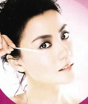 在王菲代言的護膚品廣告中,為了凸顯雙眸的緊致,化妝師用深咖啡眼影在其眼皮前端上方位置進行加重渲染。可是深色眼影及眼線反而阻擋了清澈雙眼本身具有的靈氣。這款眼妝造型雖成熟但卻讓王菲顯得世故俗氣,老氣橫秋。